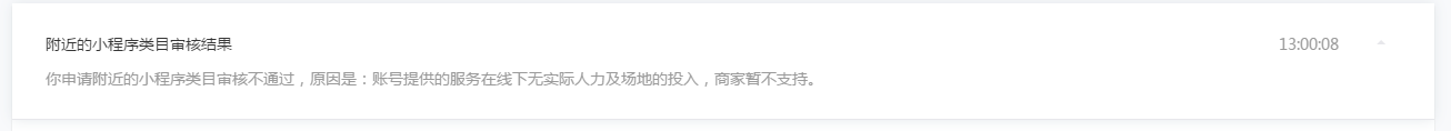 微信附近的小程序一直审核不通过!原因是:账号提供的服务在线下无实际人力及场地的投入,商家暂不支持