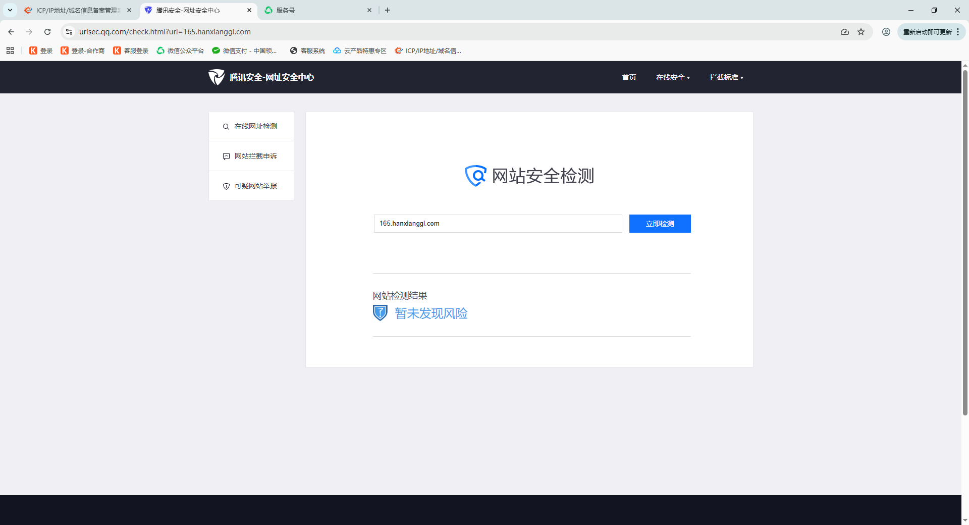 https://165.hanxianggl.com/ 出现无法访问,这个后台只是一个管理平台,没有任何违规操作,请帮忙重新审核