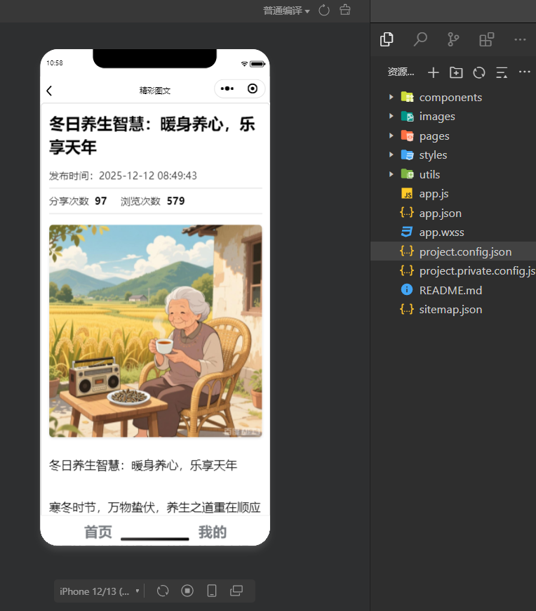 小程序是做生活分享图文,如生活中美食文章、养生文章、散文文章。
