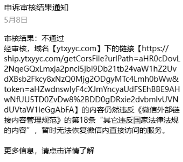 各位领导, 域名 ship.ytxyyc.com 被拦截, 提示