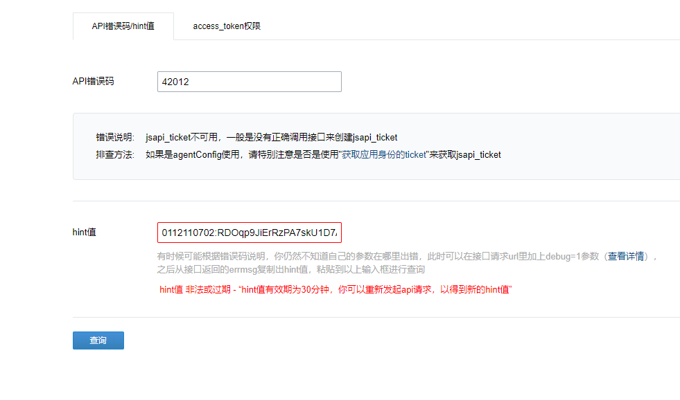 agentConfig:fail_ticket no available more info at https://open.work.weixin.qq.com/devtool/query?e=42012