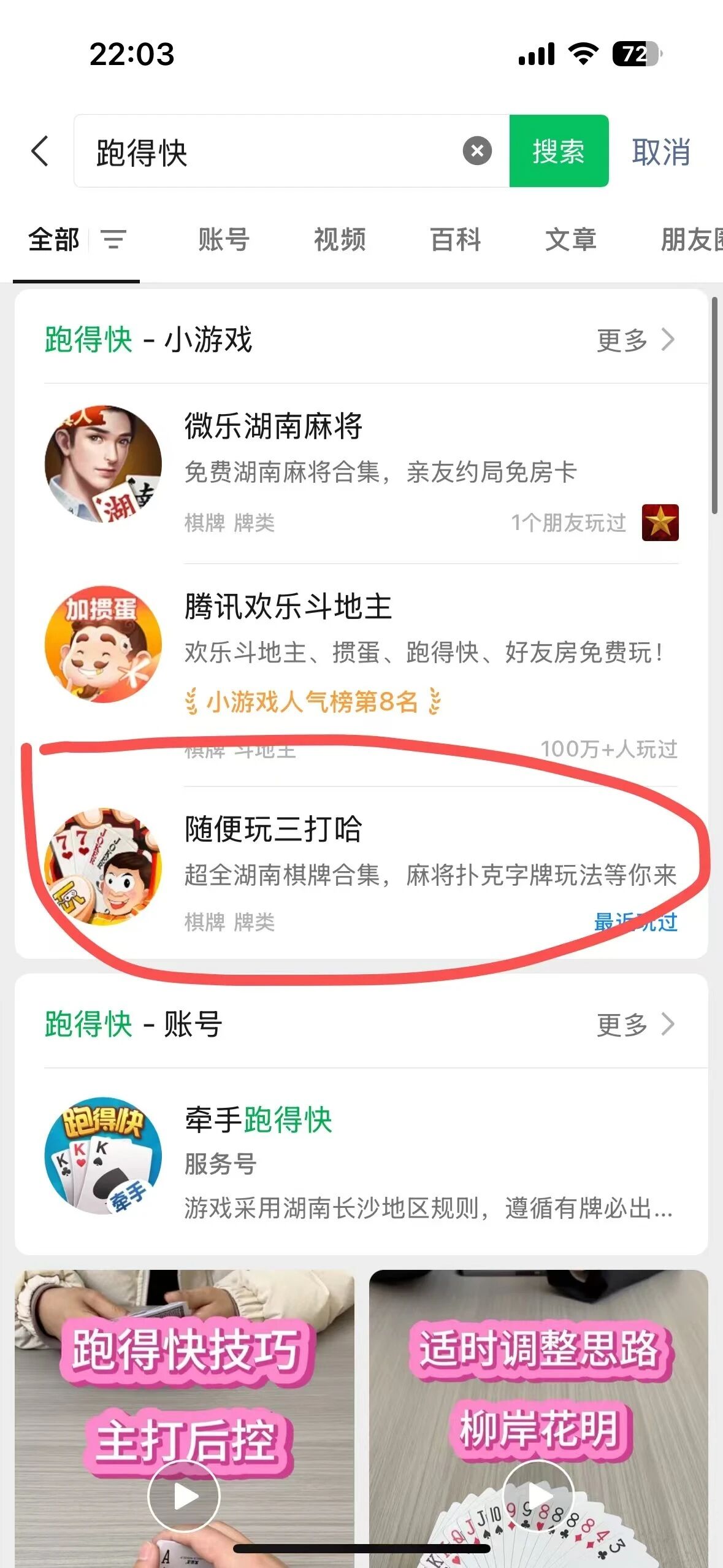 1:图1,是通过搜索跑得快,结果出来的小游戏排名没一个属于跑得快游戏版号相关的游戏排名。