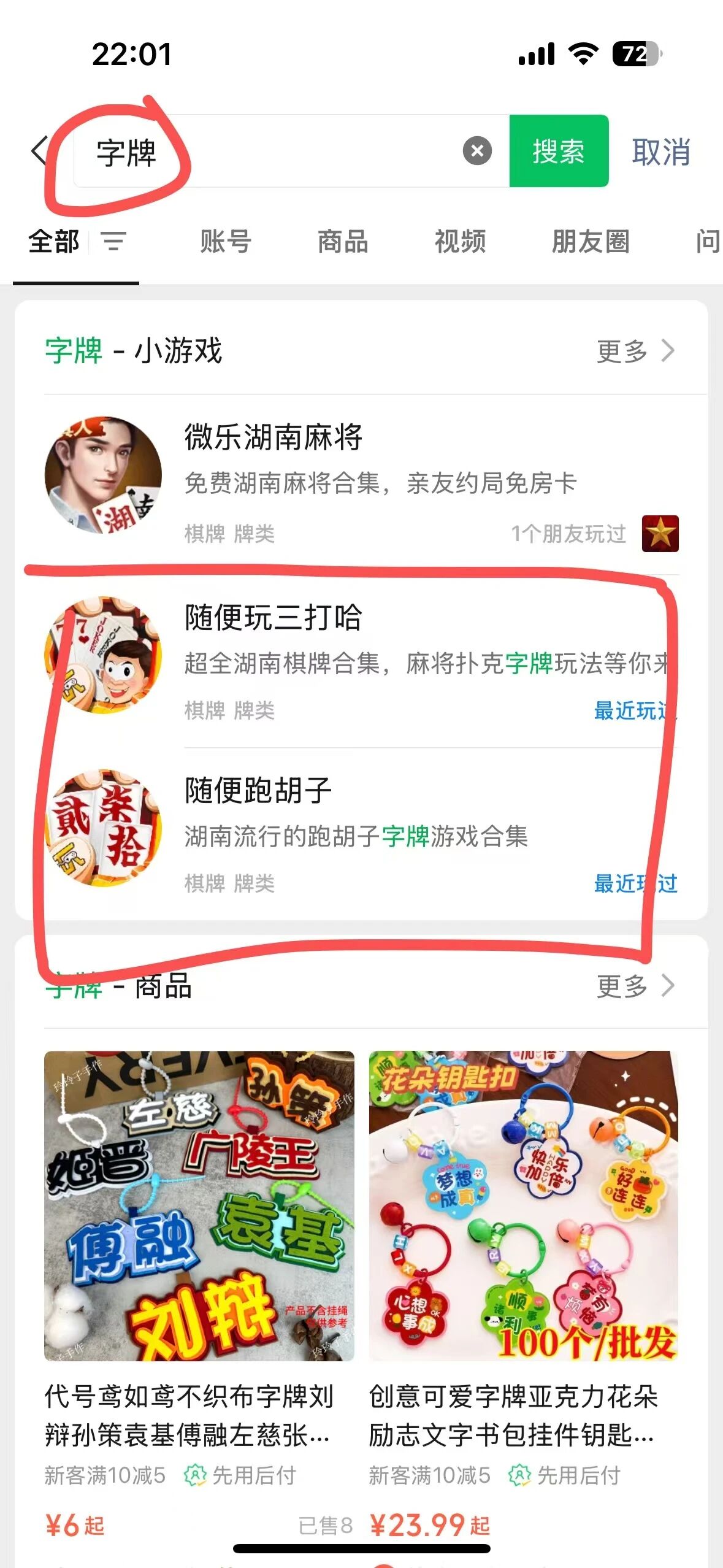 2:图2所示:是通过搜索字牌,结果出来的小游戏排名没一个属于字牌游戏版号相关的游戏排名。