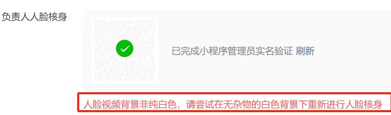 小程序APPid:wxa82751e5902ce4ab。法定代表人是小程序的管理员,备案时进行到微信扫码人脸核身时,一直无法通过。出现几种不同情况: