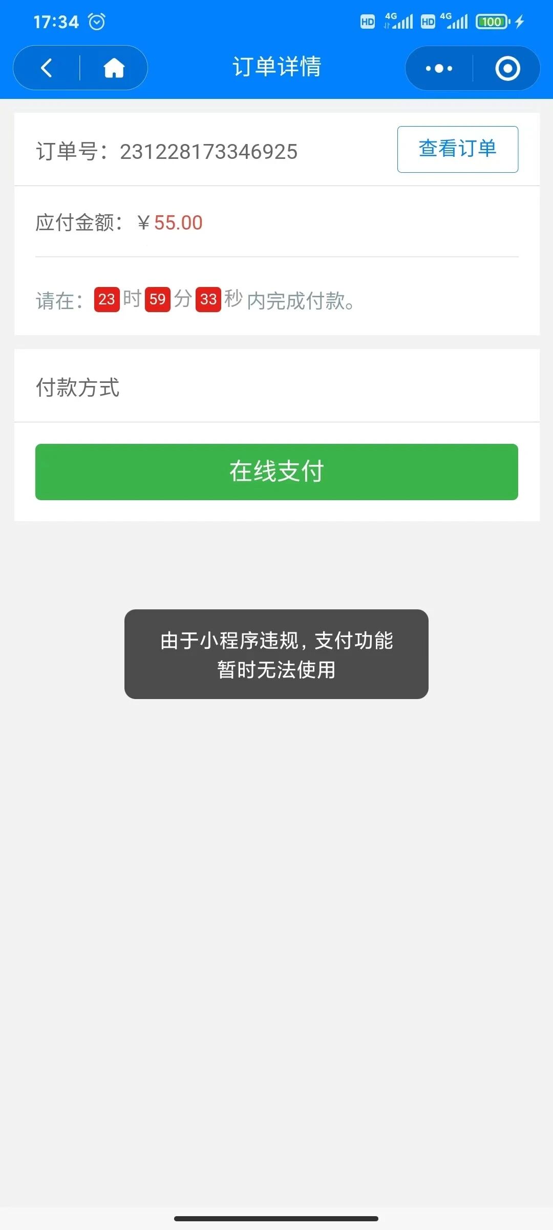 小程序支付提示由于小程序违规,支付功能 暂时无法使用。