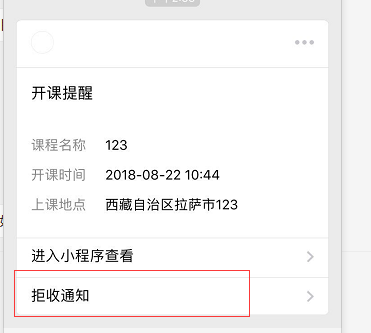 模板消息已经开发成功,可以发送服务信息。但是显示的卡片框最下面会有一个拒收选项,有的服务消息是没有的,要怎么隐藏或者取消这个选项呢。