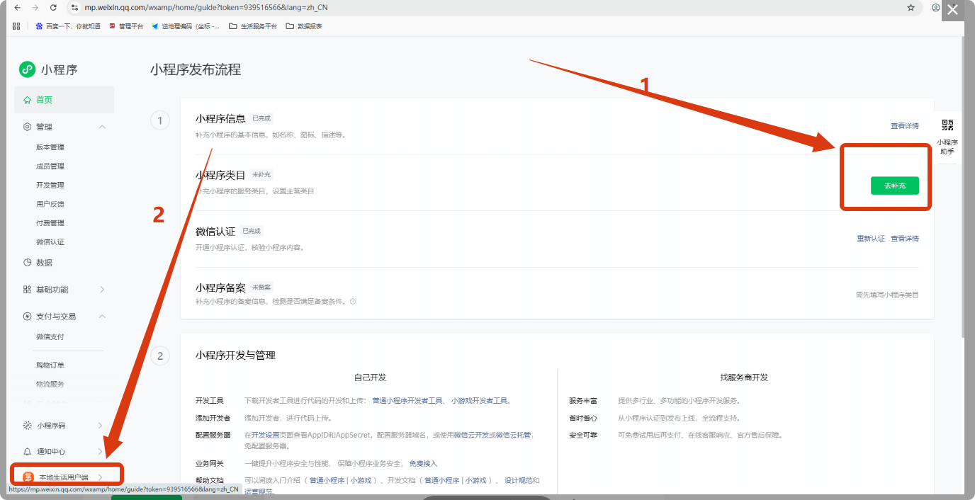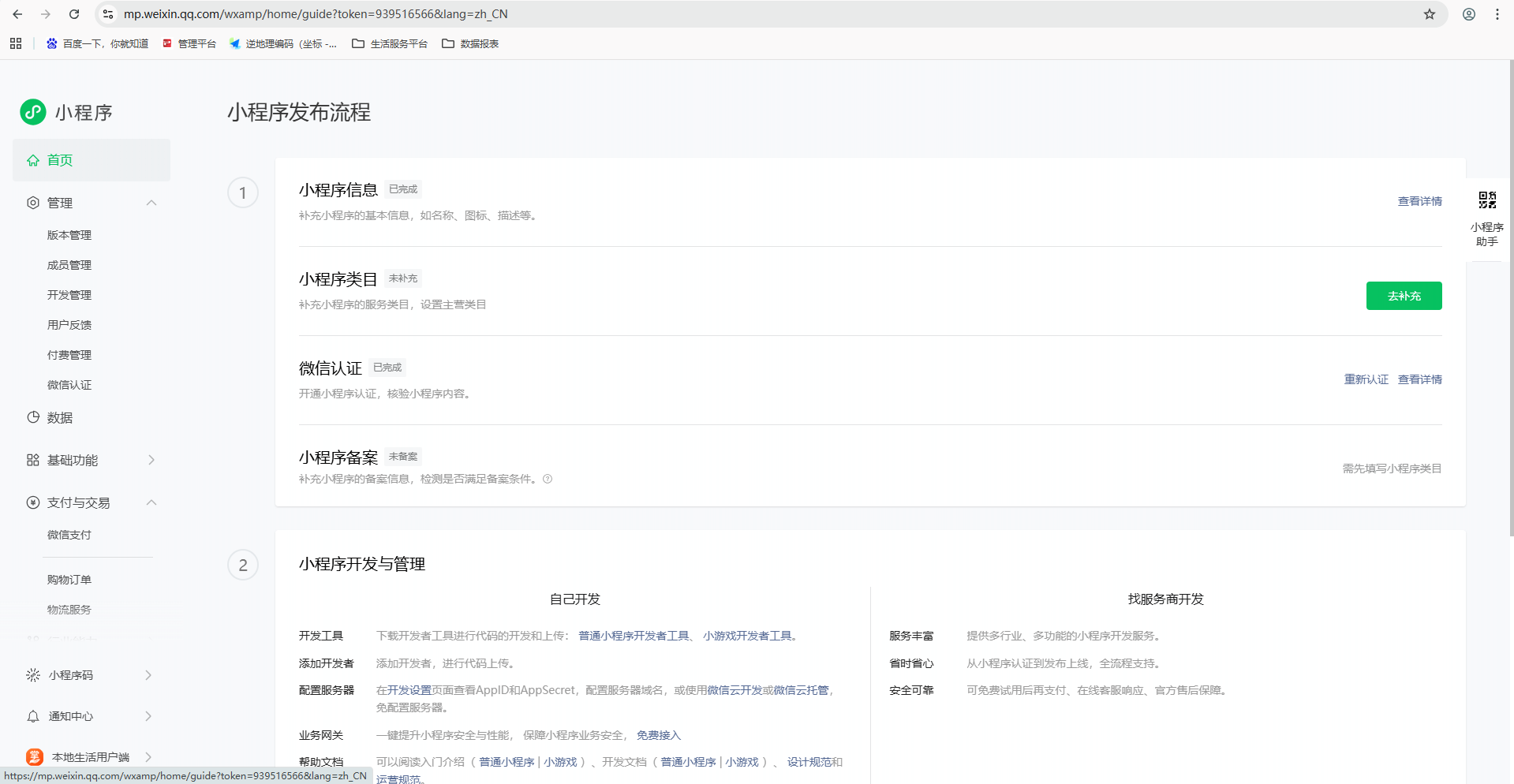 后台没有[设置-小程序主体变更]功能入口,我是需要完善信息并备案后才能有该功能吗?