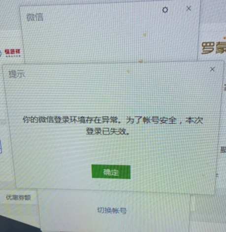 1、你好,提示“登录环境异常,本次登录失效,请重新登录”的问题,重新扫码登录即可,出现该提示一般是由于微信帐号被其它用户投诉导致(如:涉嫌频繁发送营销类广告骚扰信息等,请遵守微信使用规则,并规范个人行为,谢谢!)