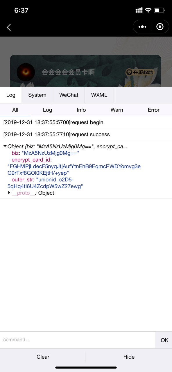 一个小程序上开通多个商户会员卡,会员卡面内容只能展示第一个打开的商户的卡面,删除”最近使用小程序“后,进入小程序,优先进入第二个商户会员卡卡面,之后就一直跳转第二个会员卡卡面,,小程序会员卡开卡组件是否设置有缓存??