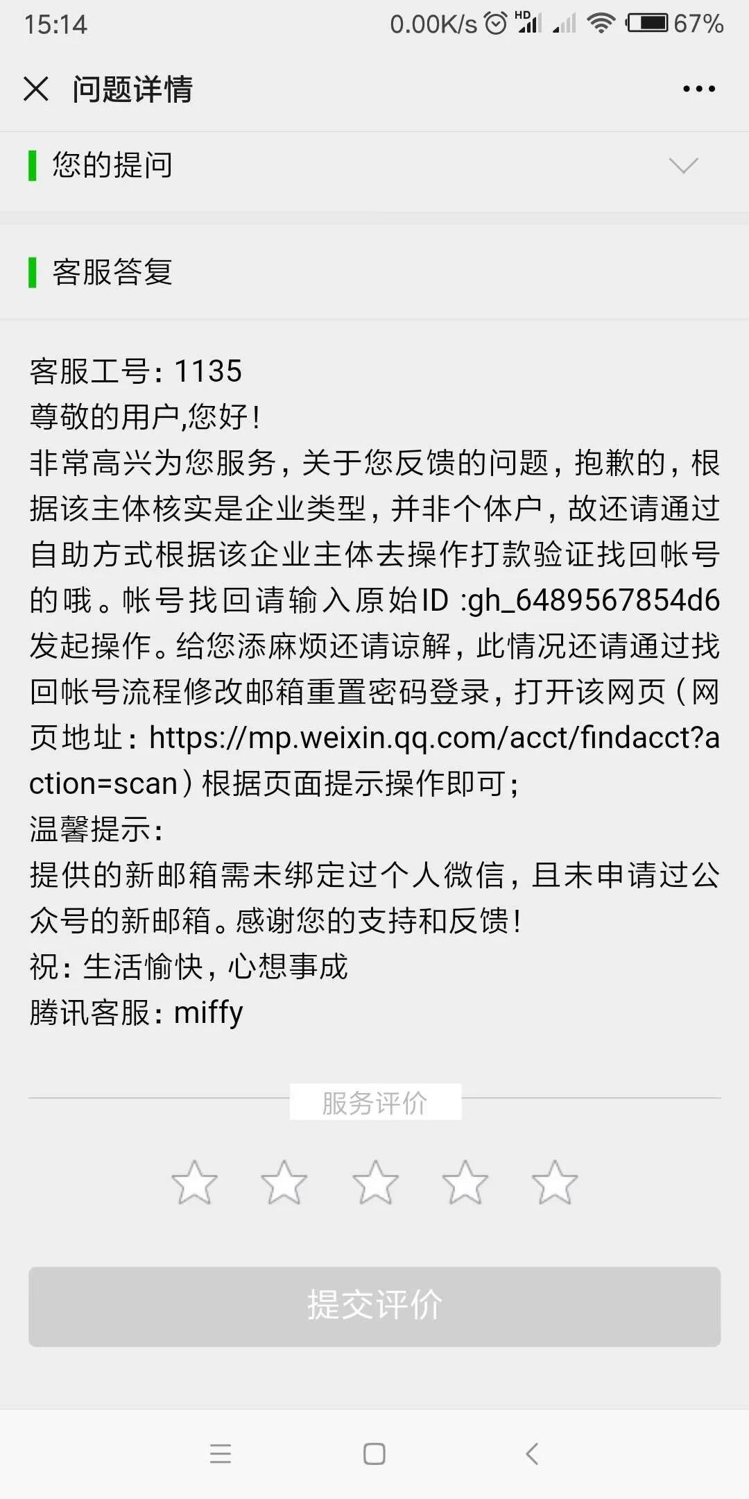 请问微信公众号冻结了,可是公司名称改变了,无法用验证续期如何解决?,联系微信和电话13763047610,邮箱366503061@qq.com