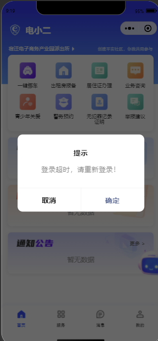 但是根据业务需求点击首页按钮的时候需要调用接口,因未登录所以提示,但是非强制性,有取消按钮可点击