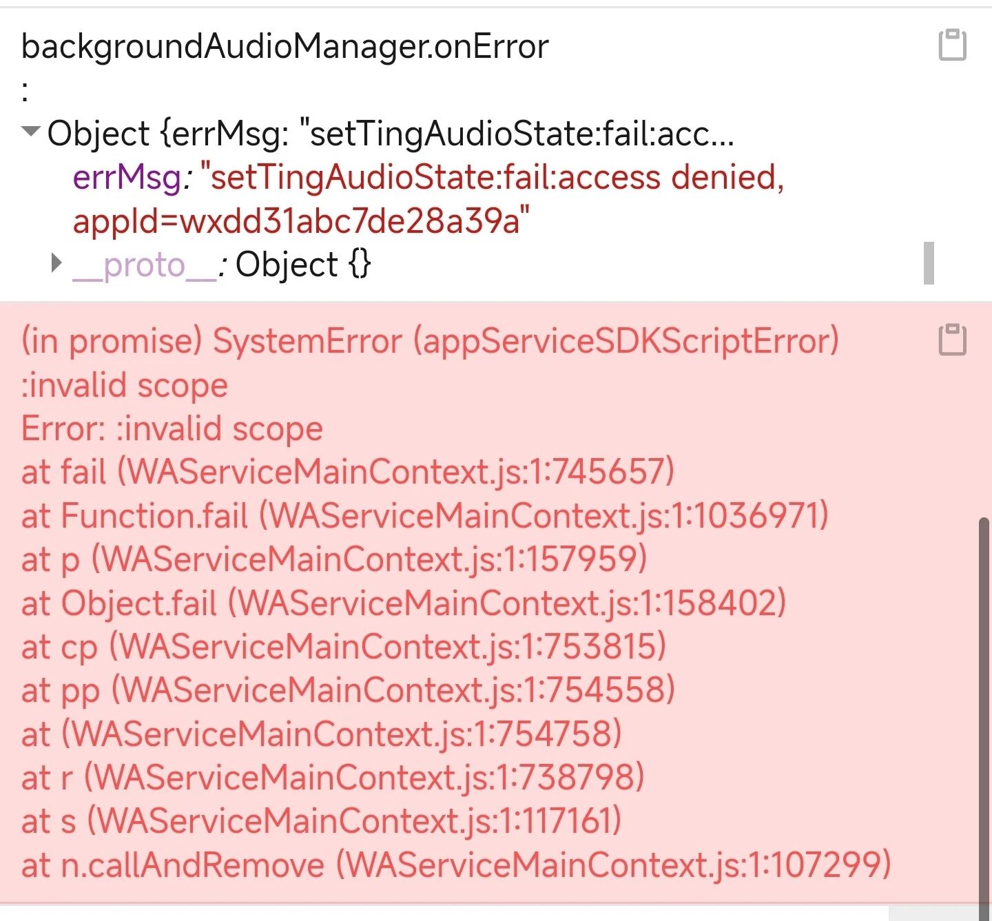 getBackgroundAudioManager 音频后台播放手机预览时提示无权限?