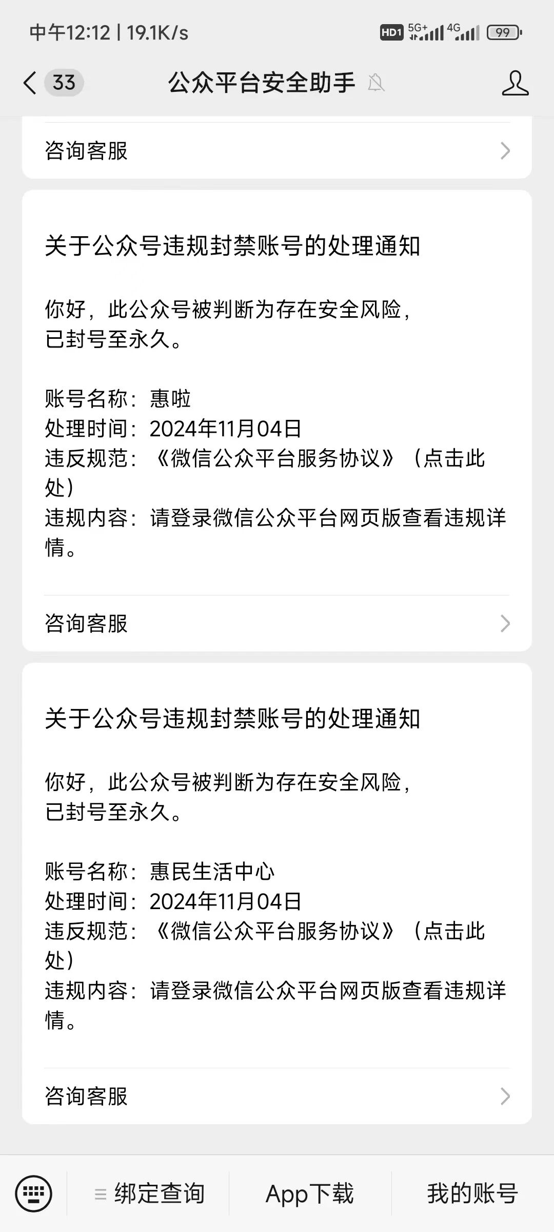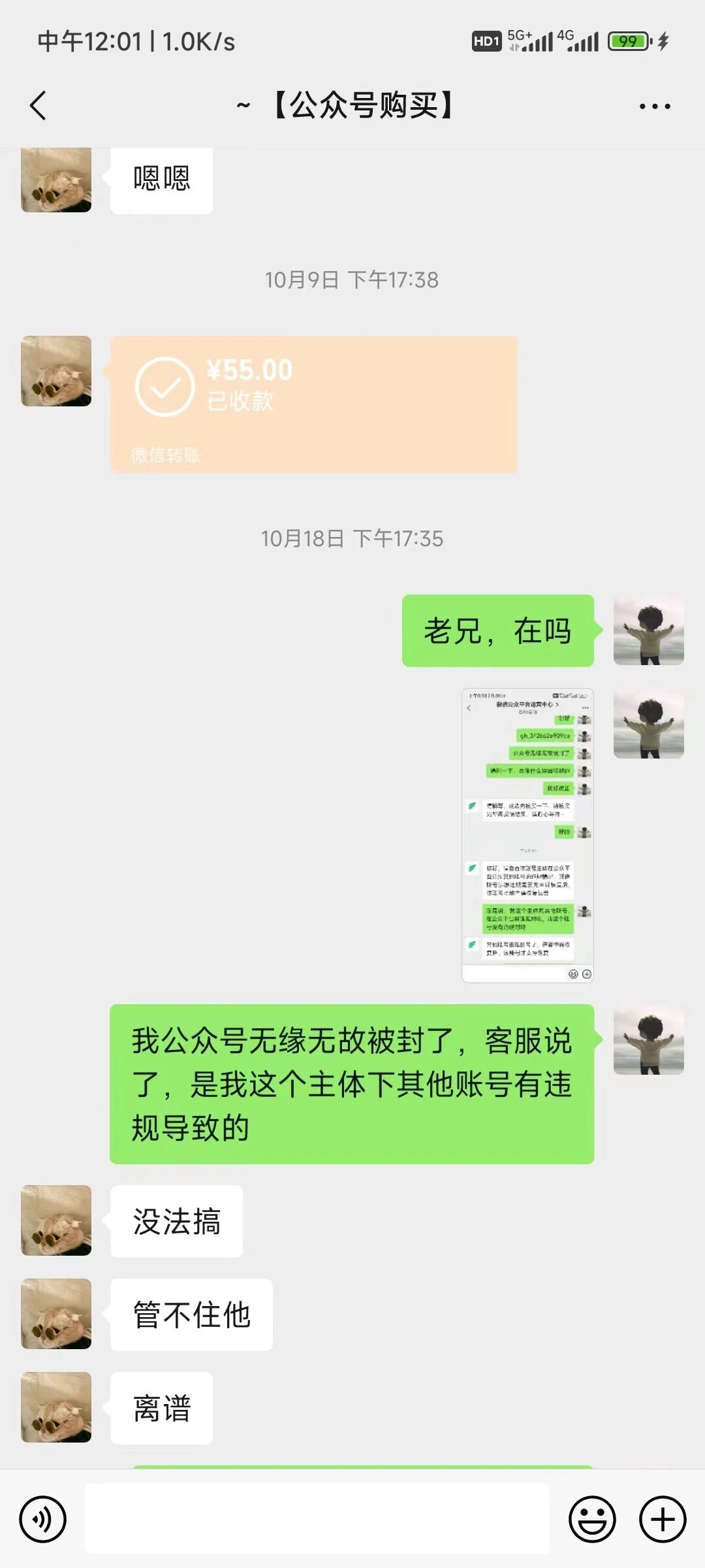 事情的经过是这样的:不久前,我购买了几个公众号,绑定成公众号的管理员,发布的内容为,游戏测评类的文章,文章内容合规合法,突然有一天我发现有一个公众号被封了(公众号名称为:冰雪单职点卡版),联系客服后才知道,我运营的公众号,没有违规,是由于该公众号主体下其他公众号违规导致,此公众号被封,所以后来找到之前卖我公众号的人,要求他们必须给我解绑管理员,不想再次发生,此类事件,然后那边给我解绑了,之后我看到别人那个号发一些疑似违规的内容,没过多久那个号也被封了,今天早晨发现我主体下的公众号都无辜被封,(他们发布违规内容时的,我已经不是这些公众号管理员,无法发文),无论是别人公司主体还是我主体下的公众号,我每次发文章都认真检查,确保文章符合平台规定,此次事件的发生,让我深感痛心和无奈。吃一叠长一智,深刻汲取这次教训,并且以后不会去购买公众号,我相信,只要我们能够坦诚沟通,一定能够消除误会,还我一个清白。还有加强学习,创作更好作品,我有什么不对的地方,也欢迎平台指正,我百分百纠正错误