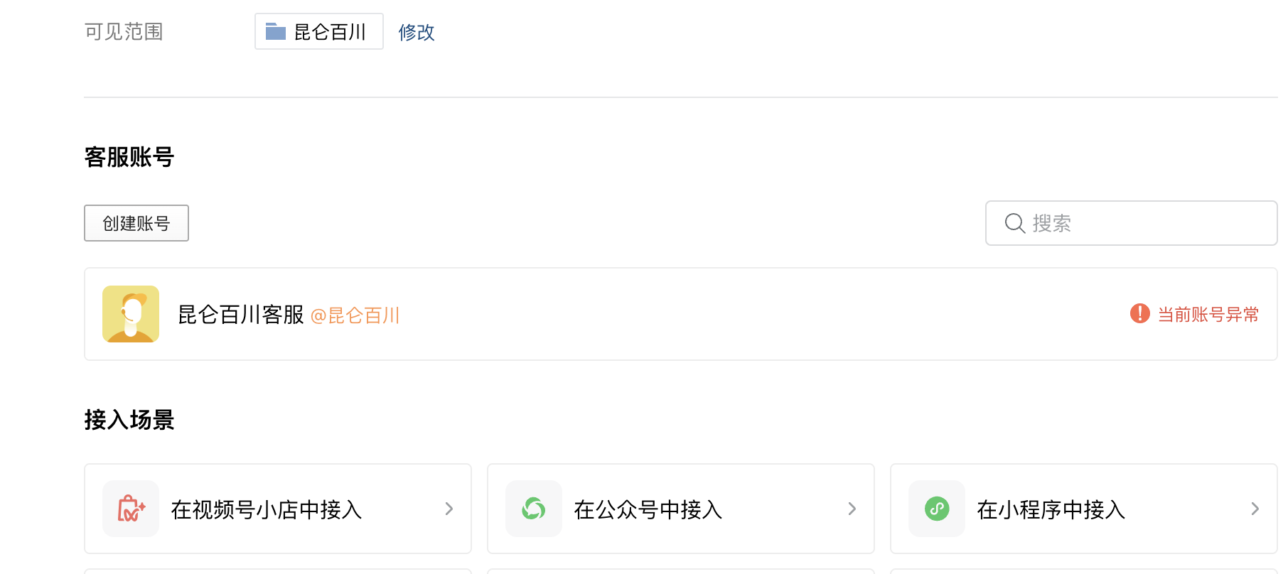 刚注册的企业微信,交过认证费用后,在配置微信客服的时候,提示名称涉嫌违法法律法规等禁止性规定 然后怎么都创建不了客服,我们就在默认的客服上面改名称吧,一改,也是提示这个 (涉嫌违法法律法规等禁止性规定), 然后返回之后 就变成当前账号异常了