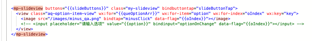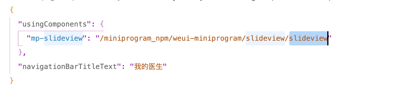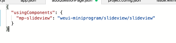 "usingComponents": { "mp-slideview": "weui-miniprogram/slideview/slideview" }