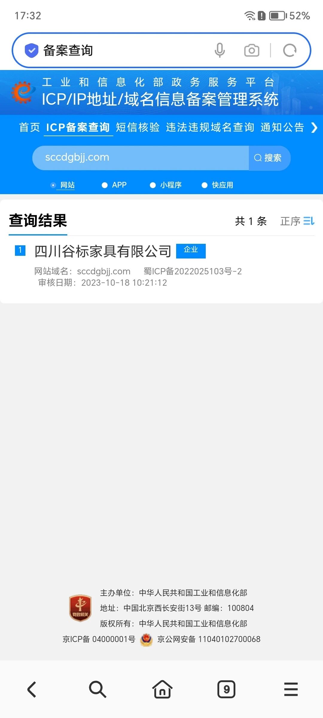 我司四川谷标家具有限公司,网站域名:sccdgbjj.com,备案号为:蜀ICP备2022025103号-2,我司域名违规链接已清理,确认网站域名不存在违规行为,请核实并解除限制。