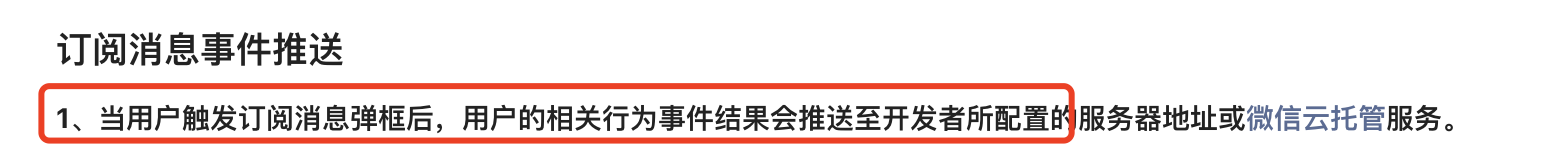 问题:当用户触发订阅消息弹框后,用户的相关行为事件 开发者所配置服务器地址未收到通知