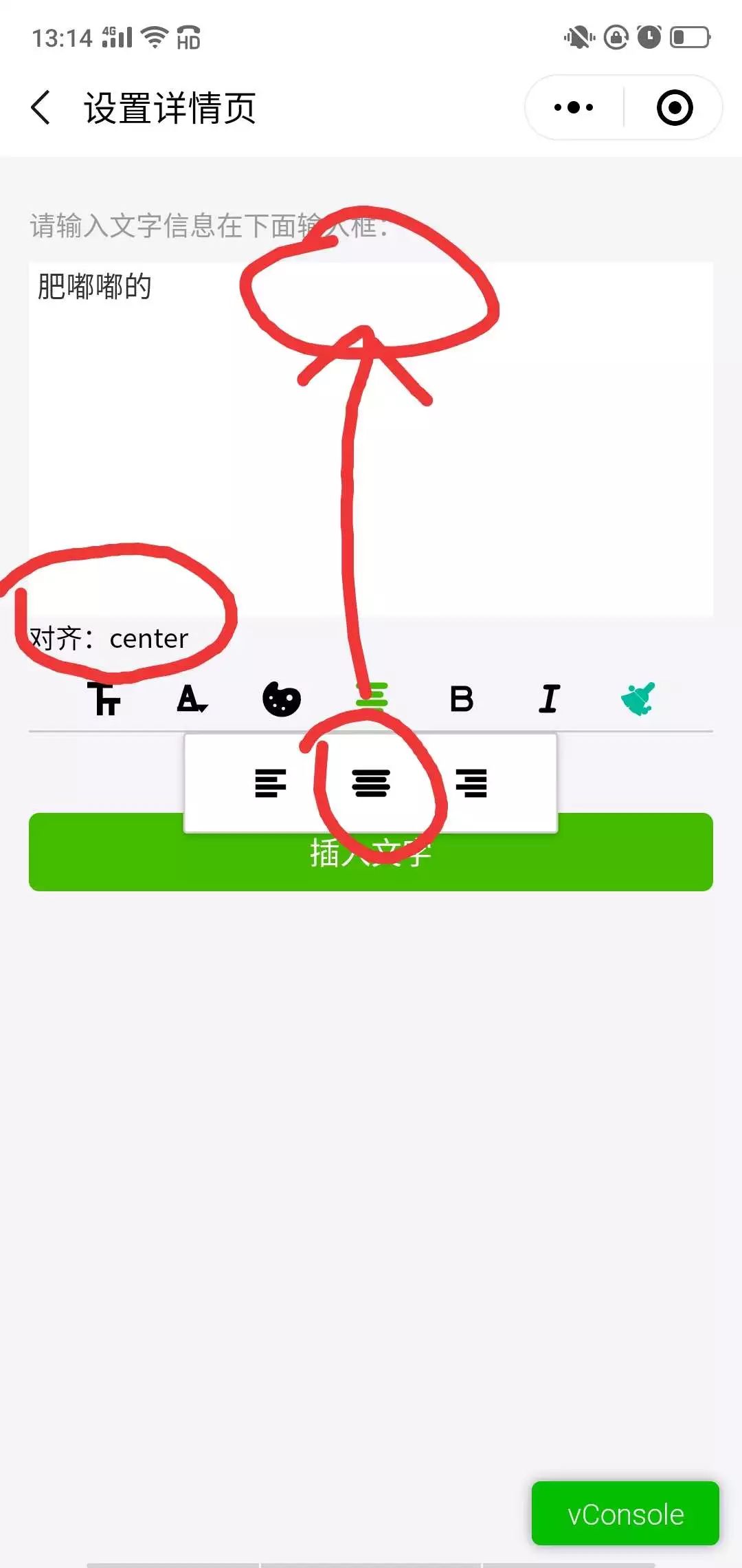 预期应是我选择了居左textarea里的的文本内容也居左,点击居中textarea文本内容居中