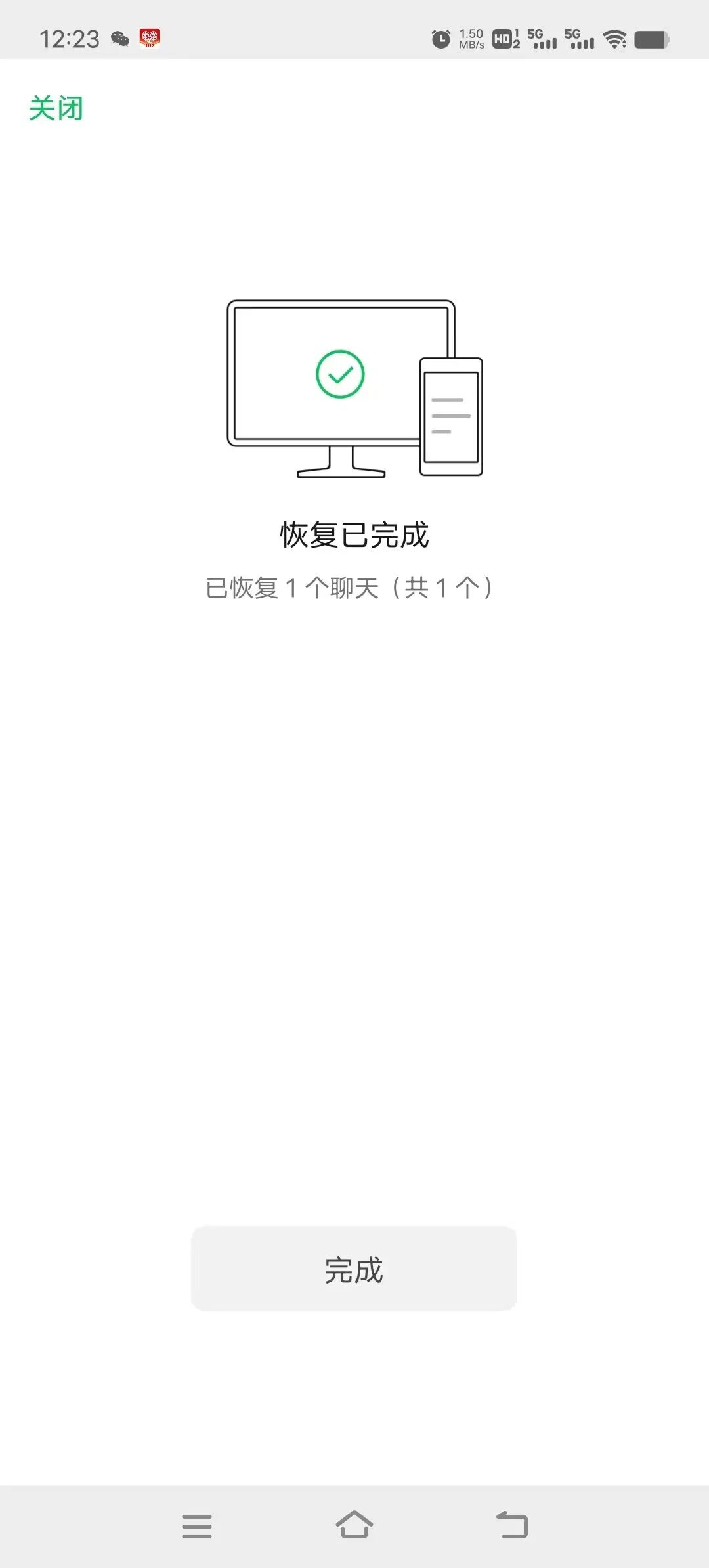 微信恢复之前备份的聊天记录, 显示完成但手机上没有聊天记录