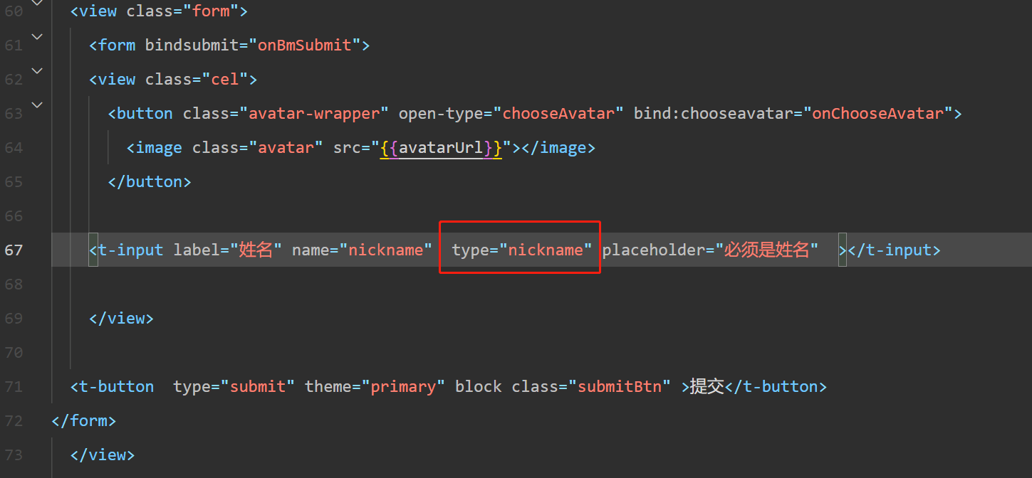 通过小程序「头像昵称填写能力」使用TDesign 的 t-input 组件 type ="nickname" 选择昵称智能填写, 表单提交后 onBmSubmit 方法 无法获取nickname 值。