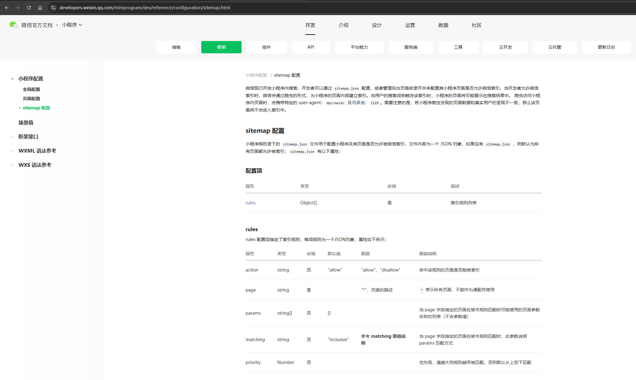 直接访问这个地址又会出现https://developers.weixin.qq.com/miniprogram/dev/reference/configuration/sitemap.html