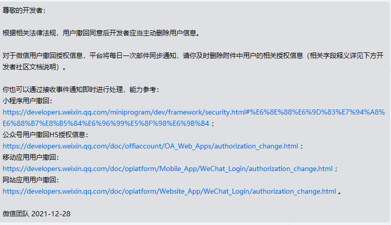 我的小程序只是掉了授权接口 但是用的授权的信息后台没有收集保存 现在每天都给我发信息提示我删除用户信息 ,问了人工客服 一直都没有给到准确的回复