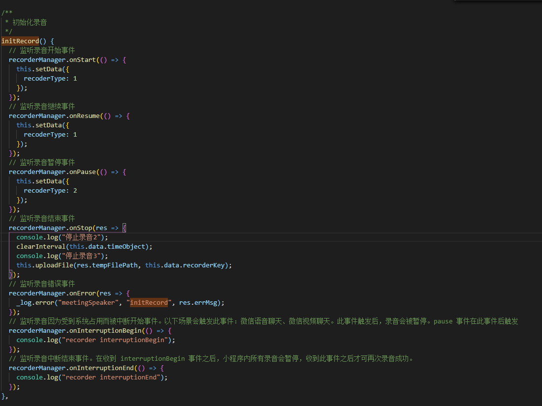 recorderManager.onStop没有执行回调,现象必现。开始方法、暂停、继续及录音设置1分钟自动停止皆执行成功。