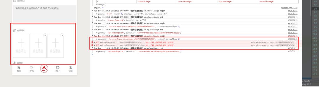 因为在开发者工具中没办法去上传图片,所以无法做到后期的调试。