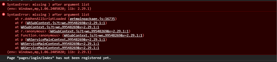 今天本人在开发的过程中,想使用log进行调试,第一次写这行代码的时候应该是语法不正确,于是立即更改为正确的写法并保存!模拟器热重载后空白页面,调试器的控制台报