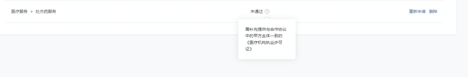 申请处方类目要求提供与线上处方平台的合作合同,合同与总公司签署,使用的处方为旗下相应医疗机构,也提供了相应医疗机构的医疗机构许可证,为什么还是被驳回,合同中也申明了使用的是旗下的医疗机构。