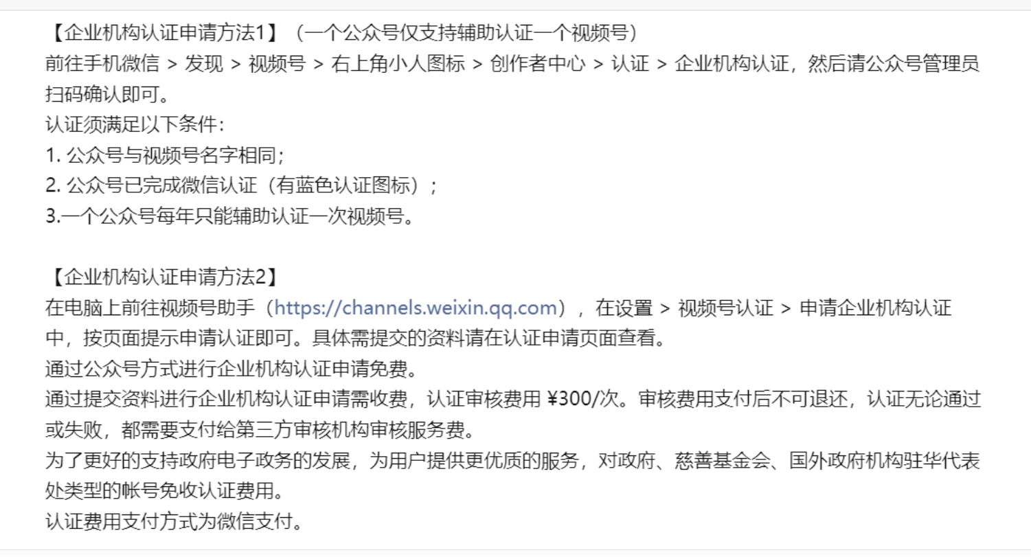 1.视频号主体为公司,认证的方式是否只有图片中两种,有没有可以让公众号名字和视频号名字不用保持一致,但主体一致的方法?