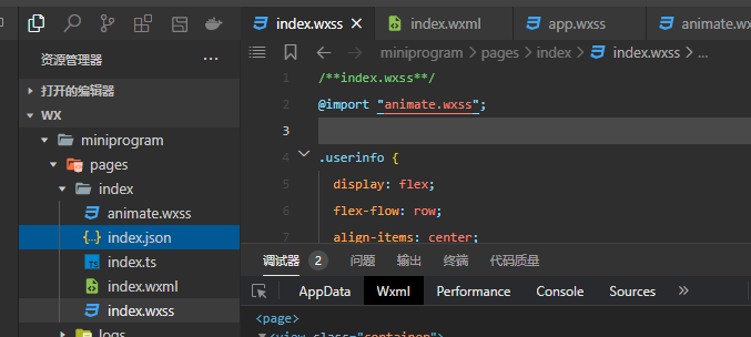 引入流程:下载Animate.css后,将文件改名为Animate.wxss放入项目种引用。