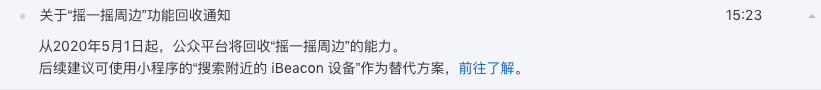 公众号收回“摇一摇周边”,为什么不提前通知下?可否改成收费功能?确实有需要求的可以缴费使用。