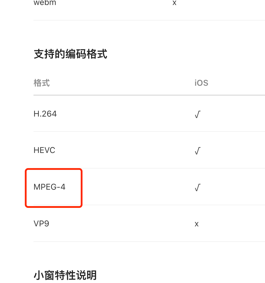 小程序iphone不支持播放mpeg4编码的MP4视频,官网文档不是说明支持播放mpeg4编码吗?