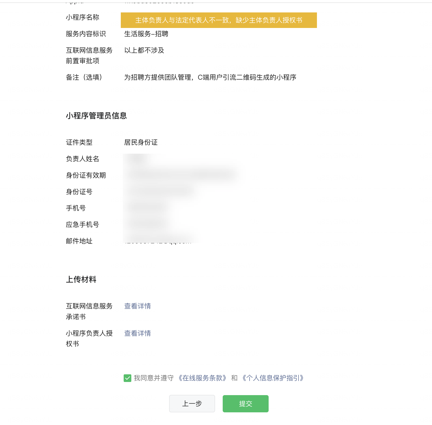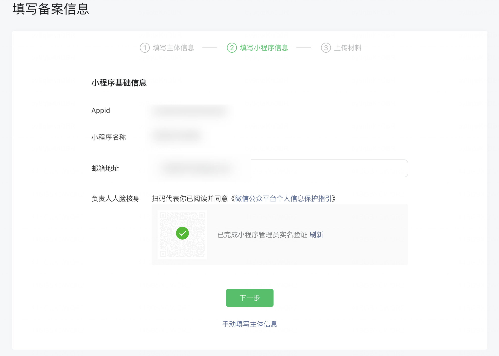 如果点击上一步,只能返回到第二步「填写小程序信息」,不能返回到「填写主体信息」这一步。