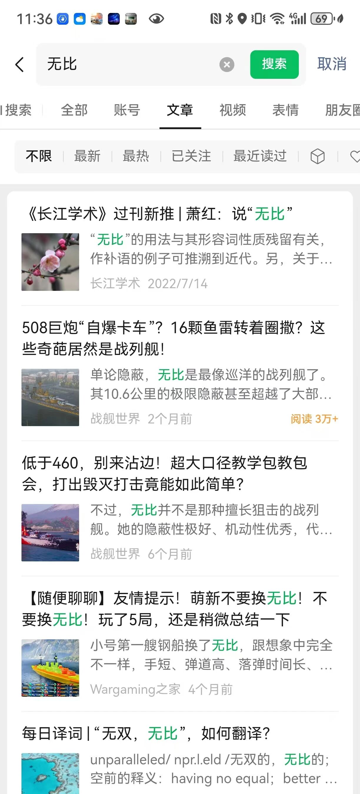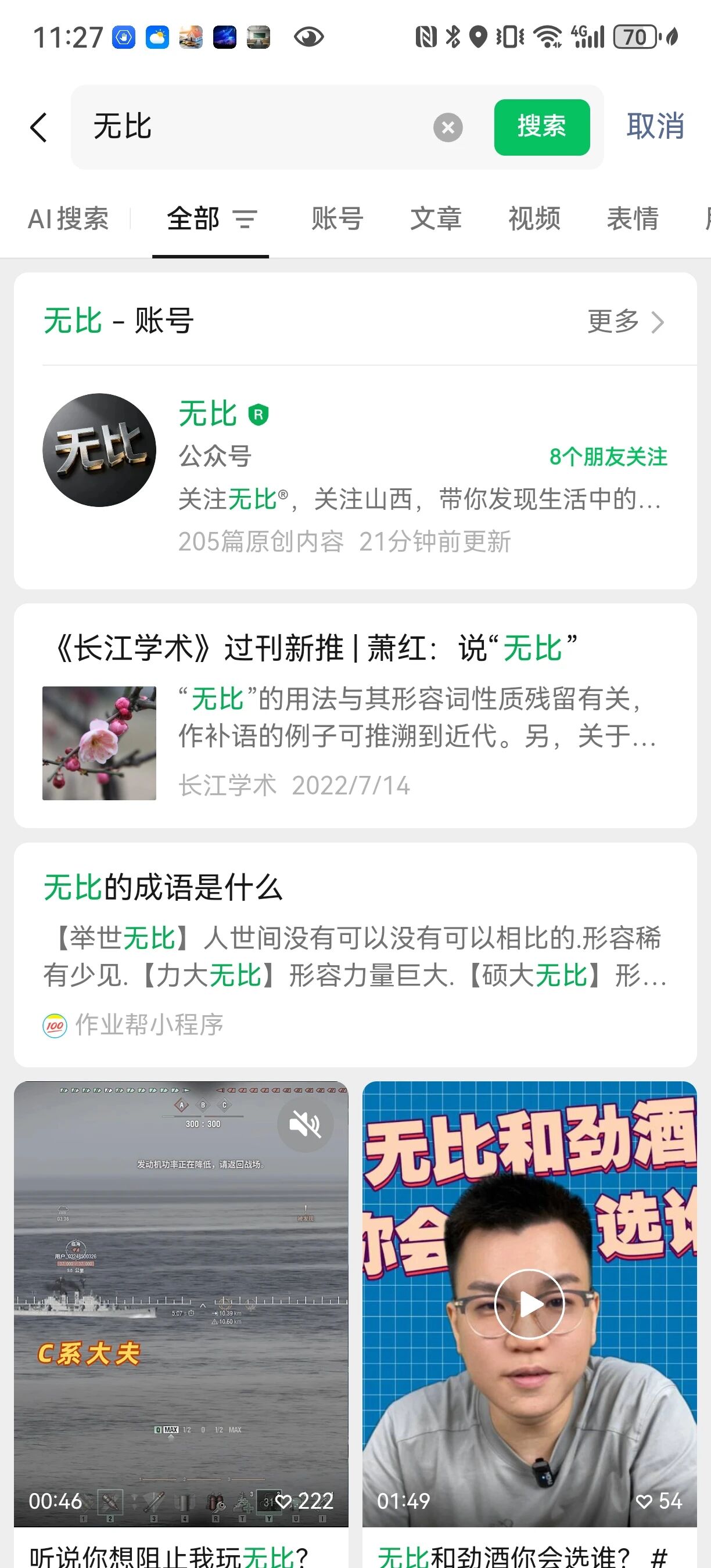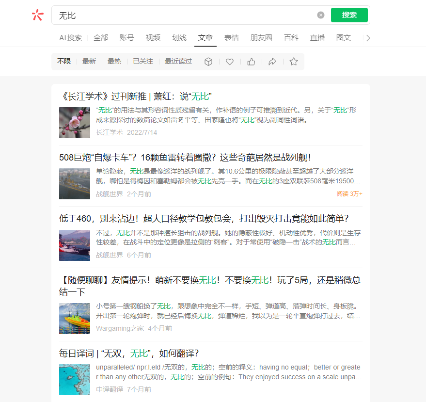 问题:搜一搜搜索名字“无比”,没有显示任何和公众号有关的文章。