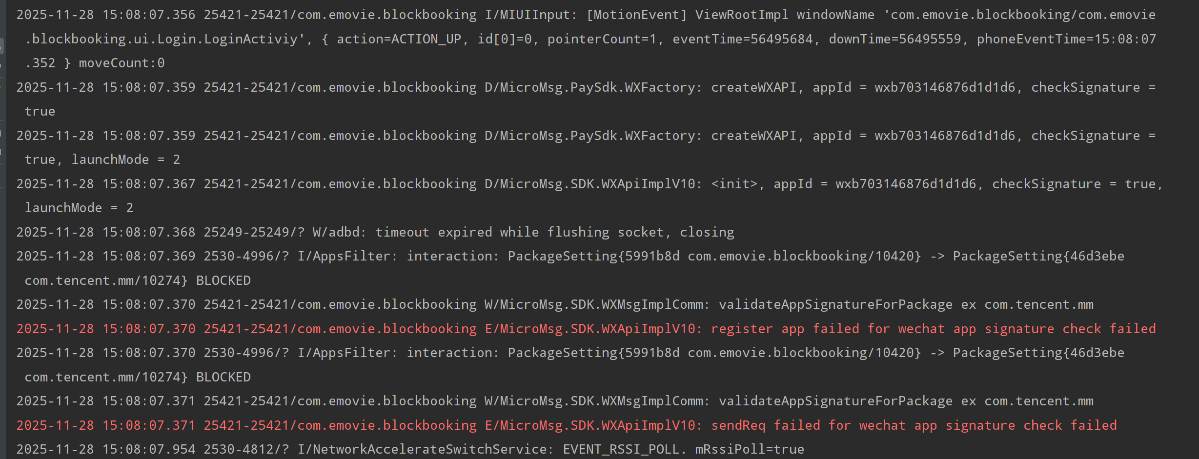 你好,复现问题时麻烦在手机微信那里上传下日志: 我->设置->帮助与反馈右上角有个上报日志的入口,麻烦提供一下微信号,时间点,bundleid、identifier、appid和opensdk的调用时间点(可以社区私信提供)和open帐号后台移动应用签名包名截图,私信后请在评论区回复