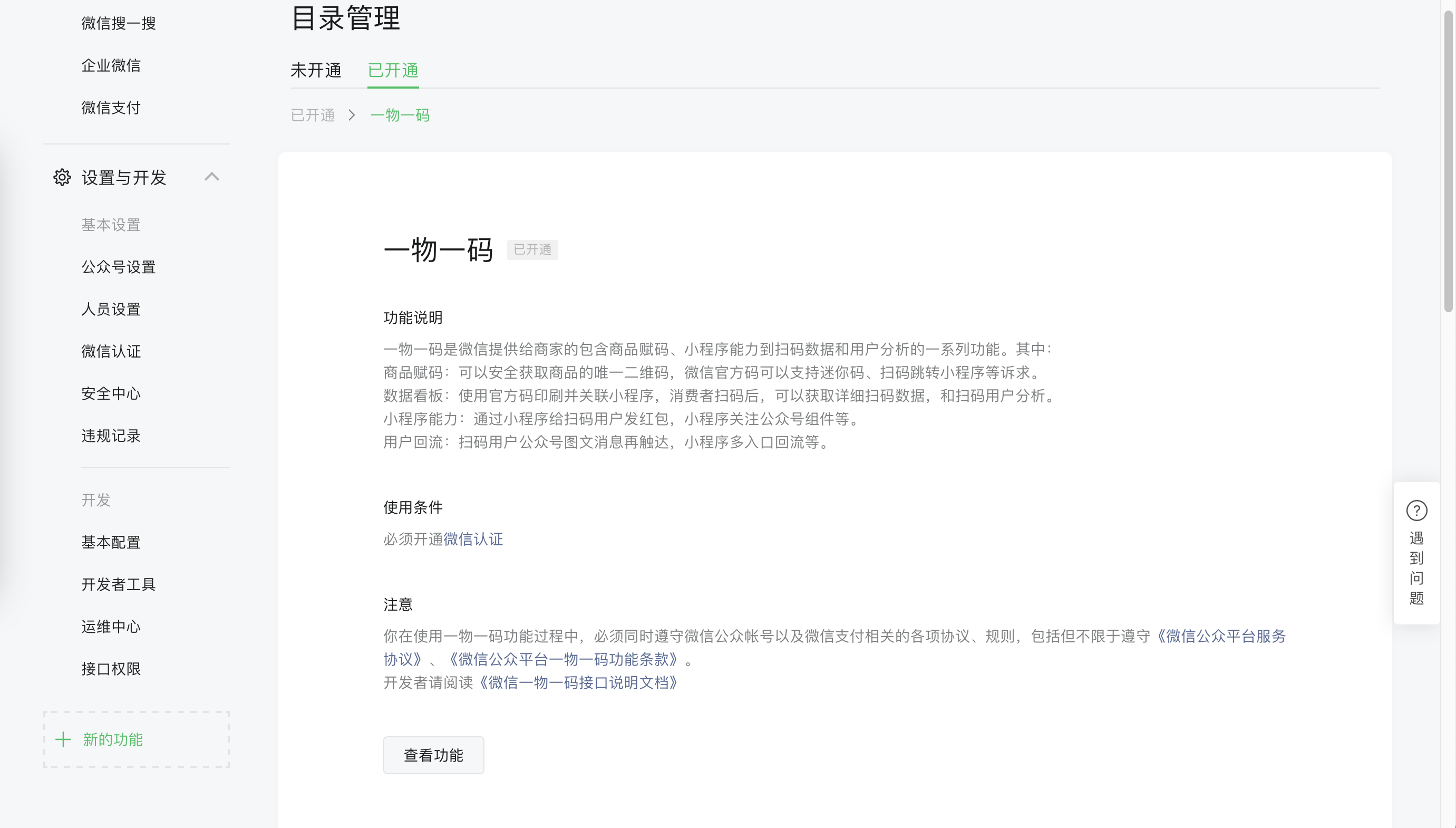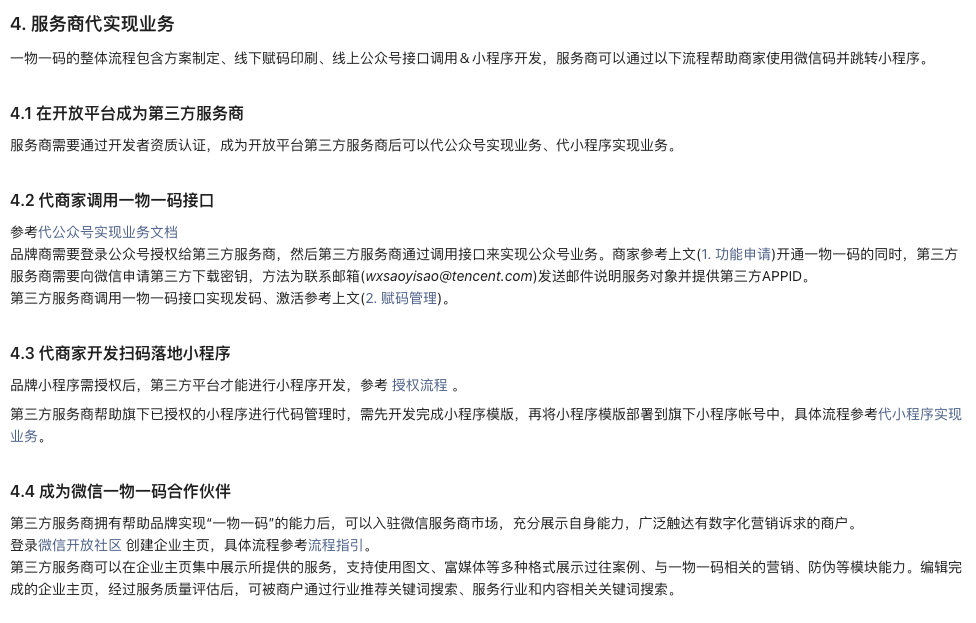 用公众号access_token和第三方平台authorizer_access_token,调用一物一码申请API。(之前是公众号申请有限制,后又申请了服务商)