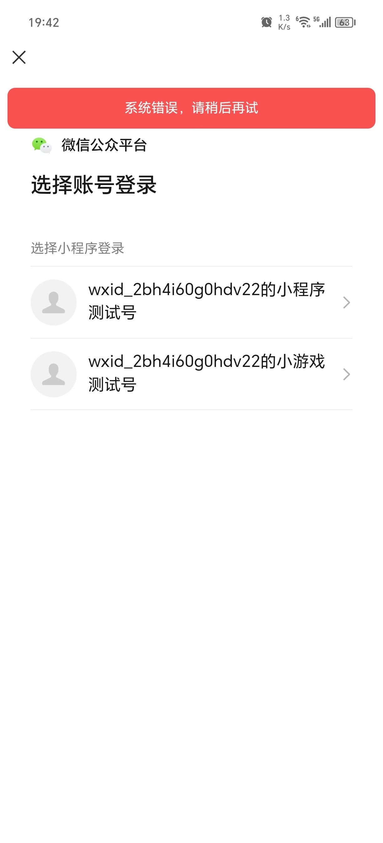 你好,解绑后重新生成新的测试号试试呢?