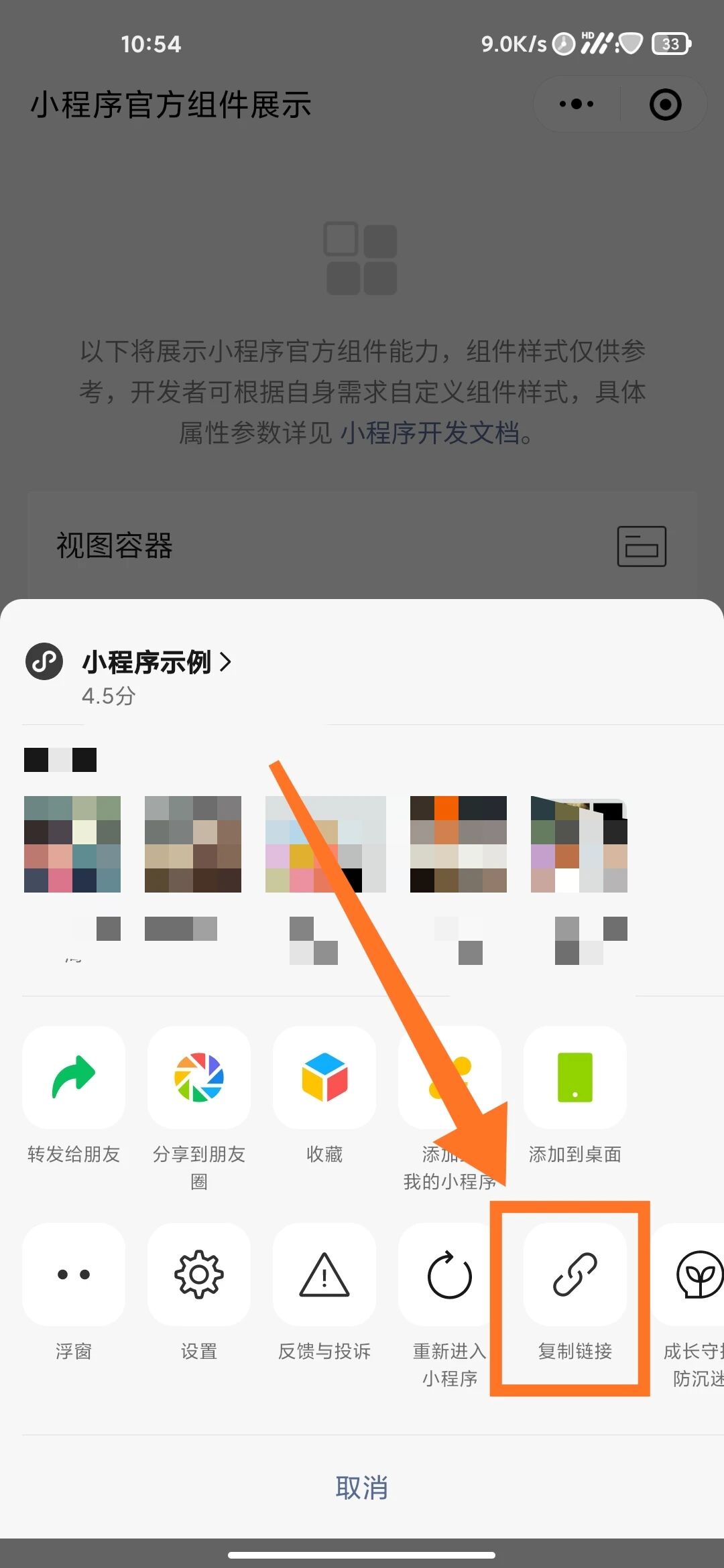 复制链接有办法在小程序内部生成吗? 例如: #小程序://小程序示例/小程序官方组件展示/zh5Fkz9nXMOTy8I 参考的文档是哪个呢?