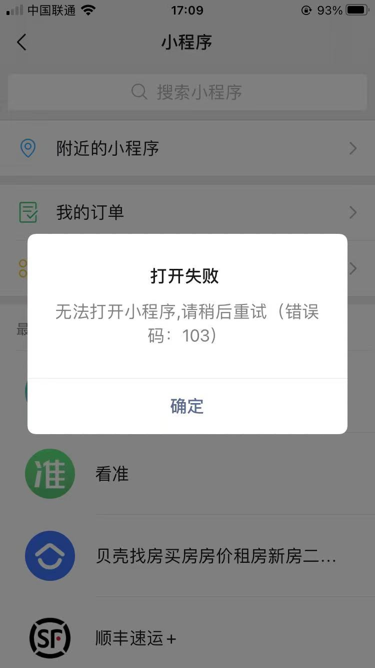 更新手机系统后 所有小程序都无法打开 显示错误码103