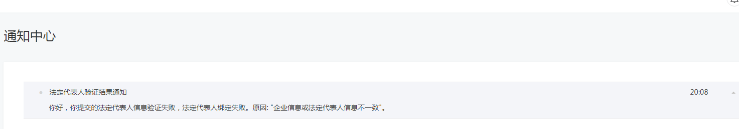 然后今天法定代表人认证也是提示这个。营业执照是5月20号办理成功的 是否因为工商数据跟腾讯官方没有联网导致