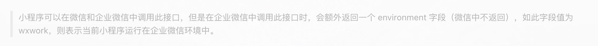 企业微信也可以通过getSystemInfo里面的environment判断运行环境https://developers.weixin.qq.com/miniprogram/dev/dev_wxwork/dev-doc/qywx-api/foundation/wxgetsysteminfo.html