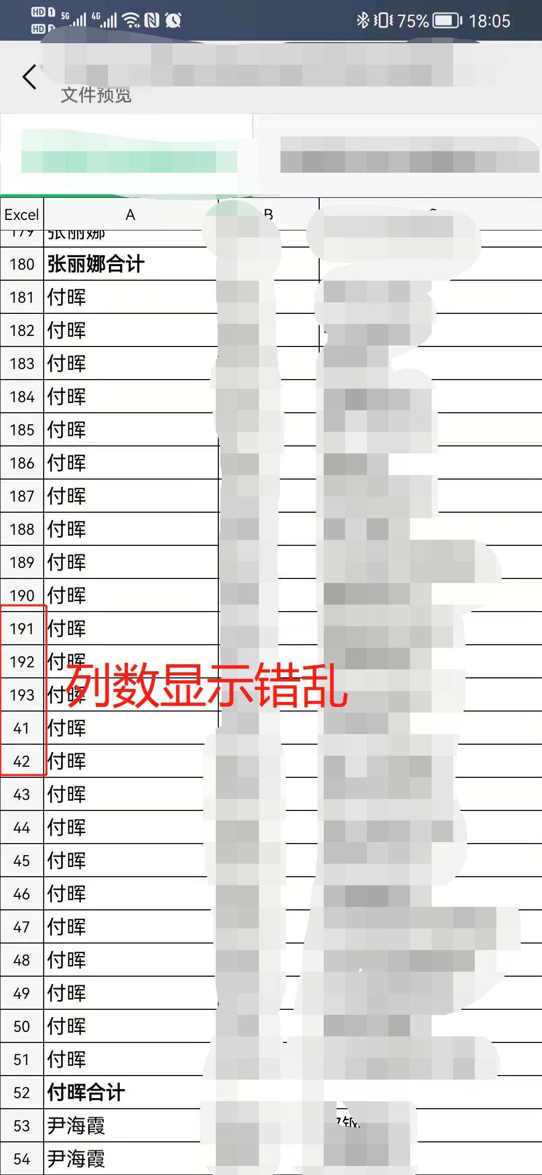 在小程序Android端打开Excel文档,列数显示错乱,且文档内容显示不全,比如有600条数据,有时候打开能看到152条,有时候能看到500条。文档本身是没有问题的,不知道为什么在Android端打开不好使。