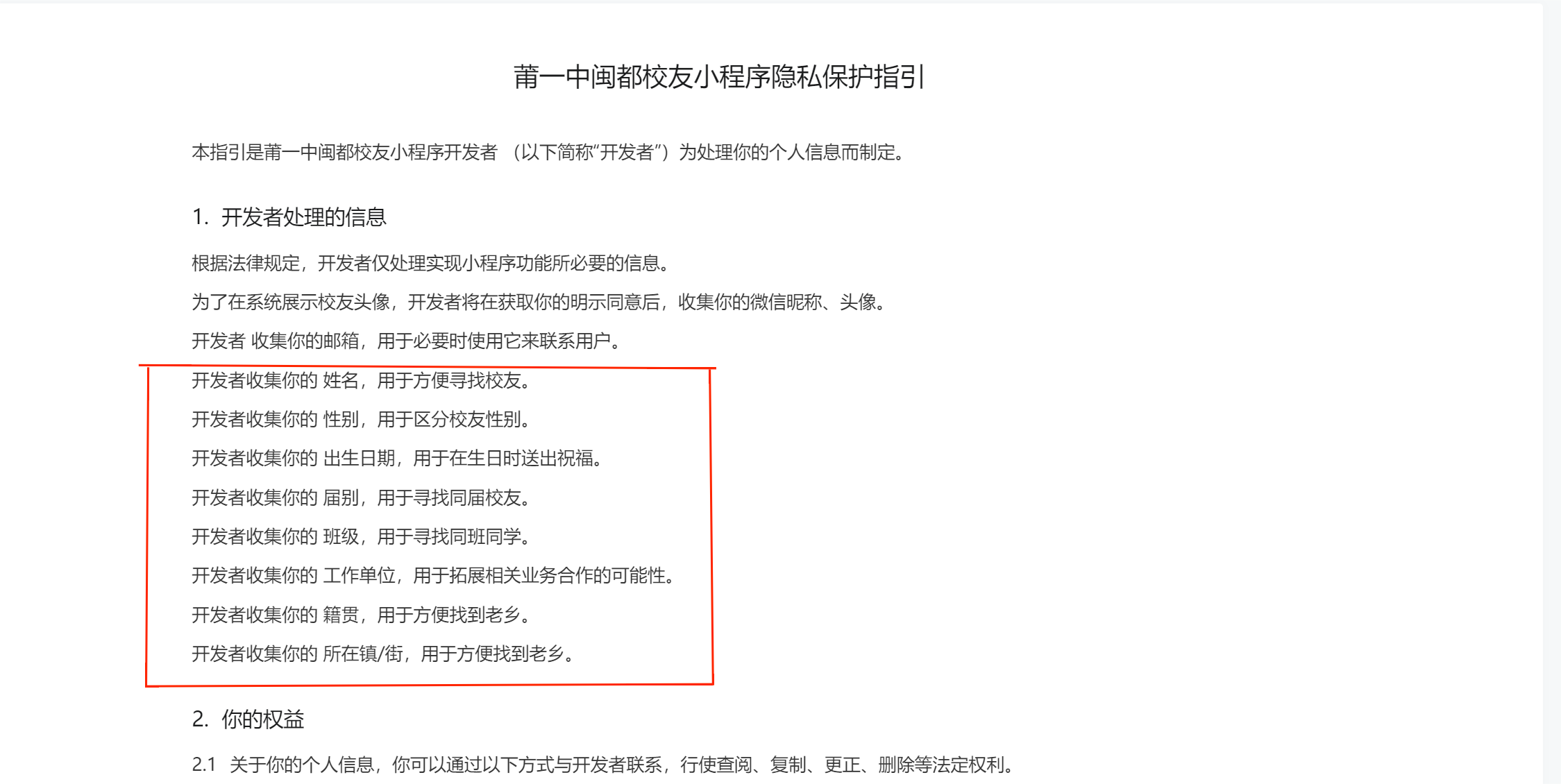 但是在小程序管理后台,查看审核中的协议,所有 自定义 类型的收集信息(上图红框中的数据)全部丢失,如下图