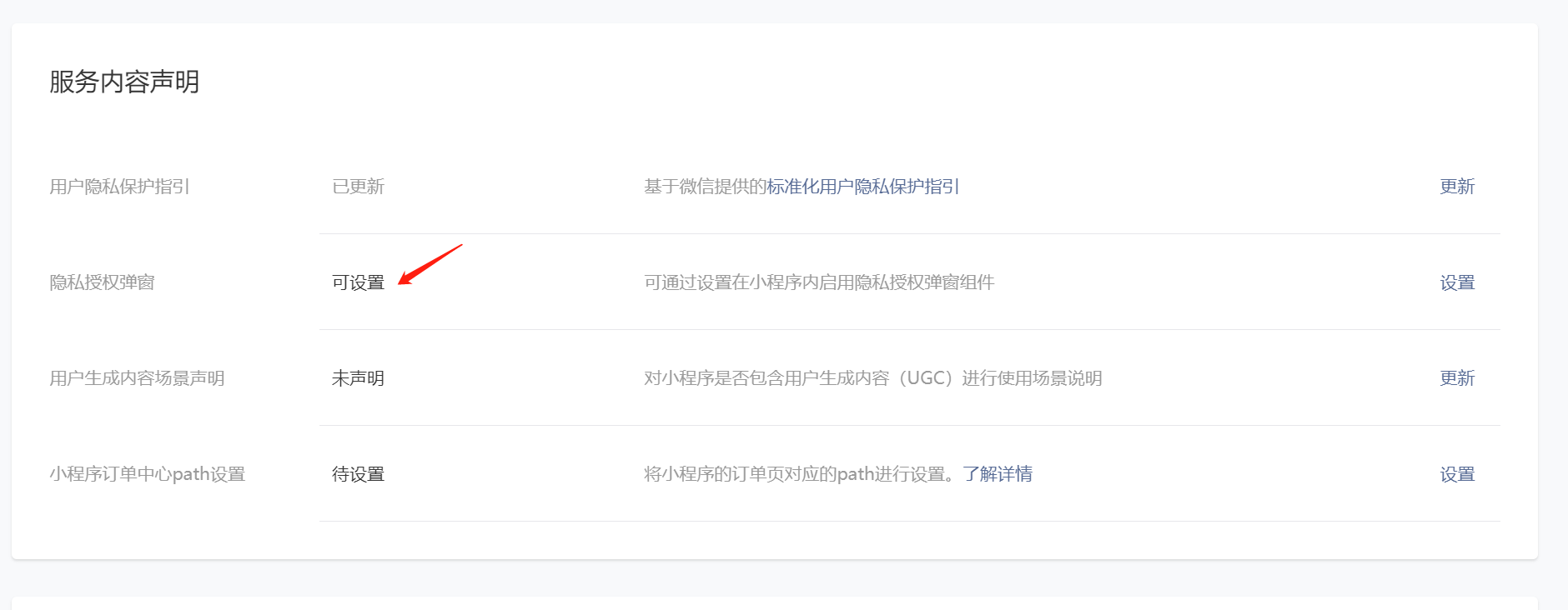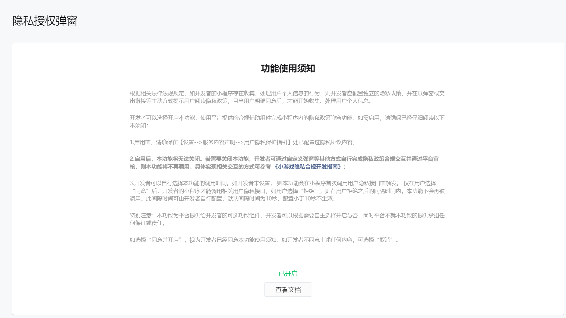 已设置在小程序内启用隐私授权弹窗组件,但是管理后台仍然显示未设置的状态。