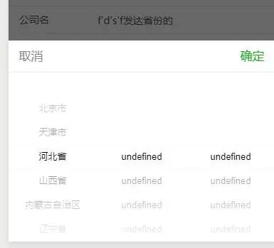 还有二级城市和三级城市显示为undefined,取消掉后再打开就显示正常。