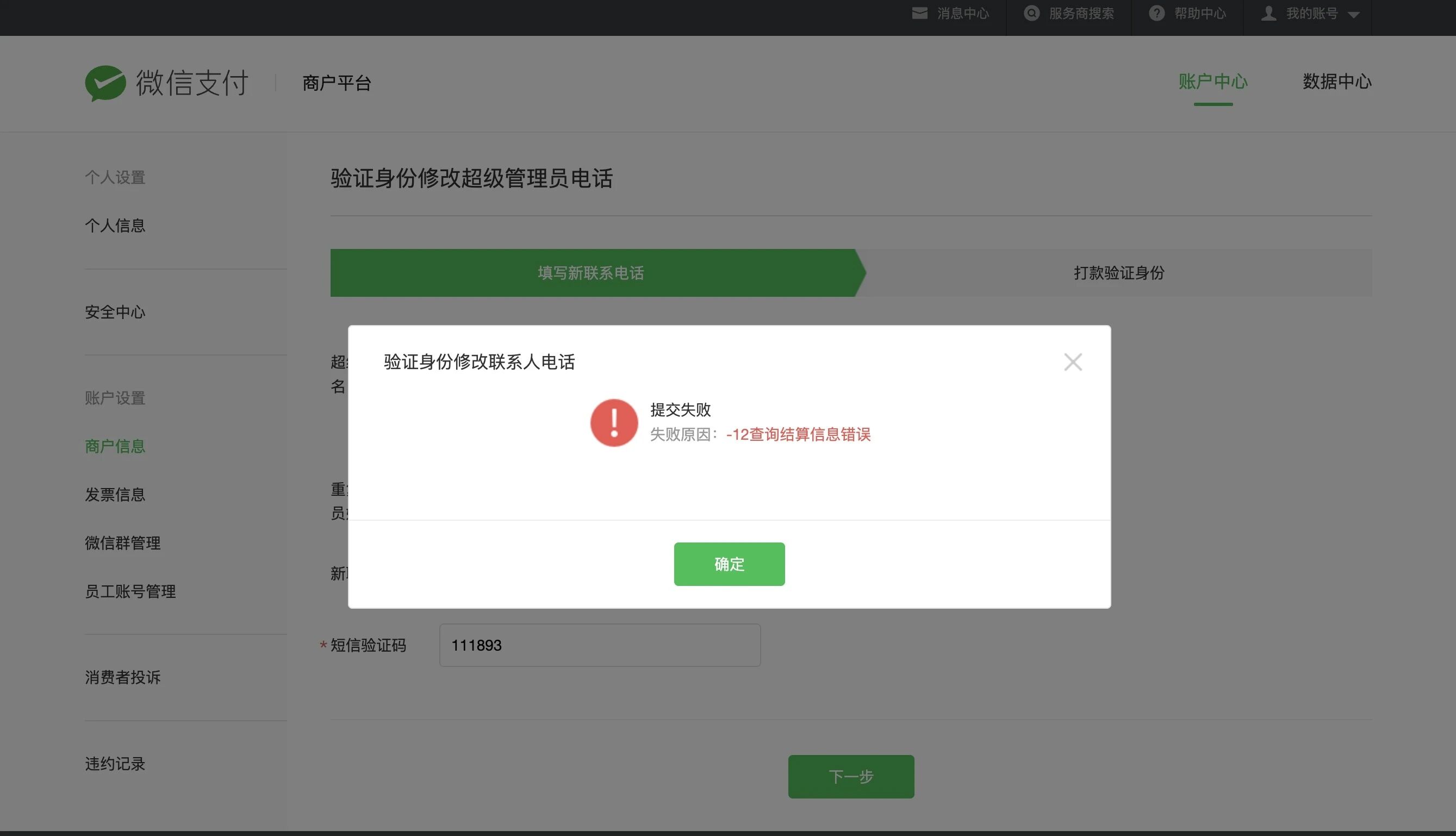 你好,我公司的微信商户平台原超级管理员离职,我们想更换这个超级管理员,但是提醒查询结算信息错误,请问需要如何操作能更换这个管理员呢?