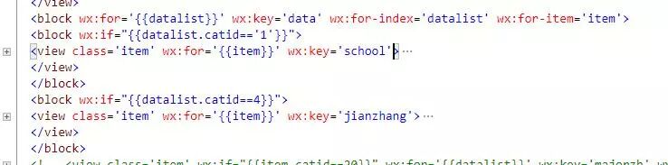 如果按照你上面这个写法,应该是判断 wx:if="{{ item.catid == 1}}" 和 wx:if="{{ item.catid == 4}}"
