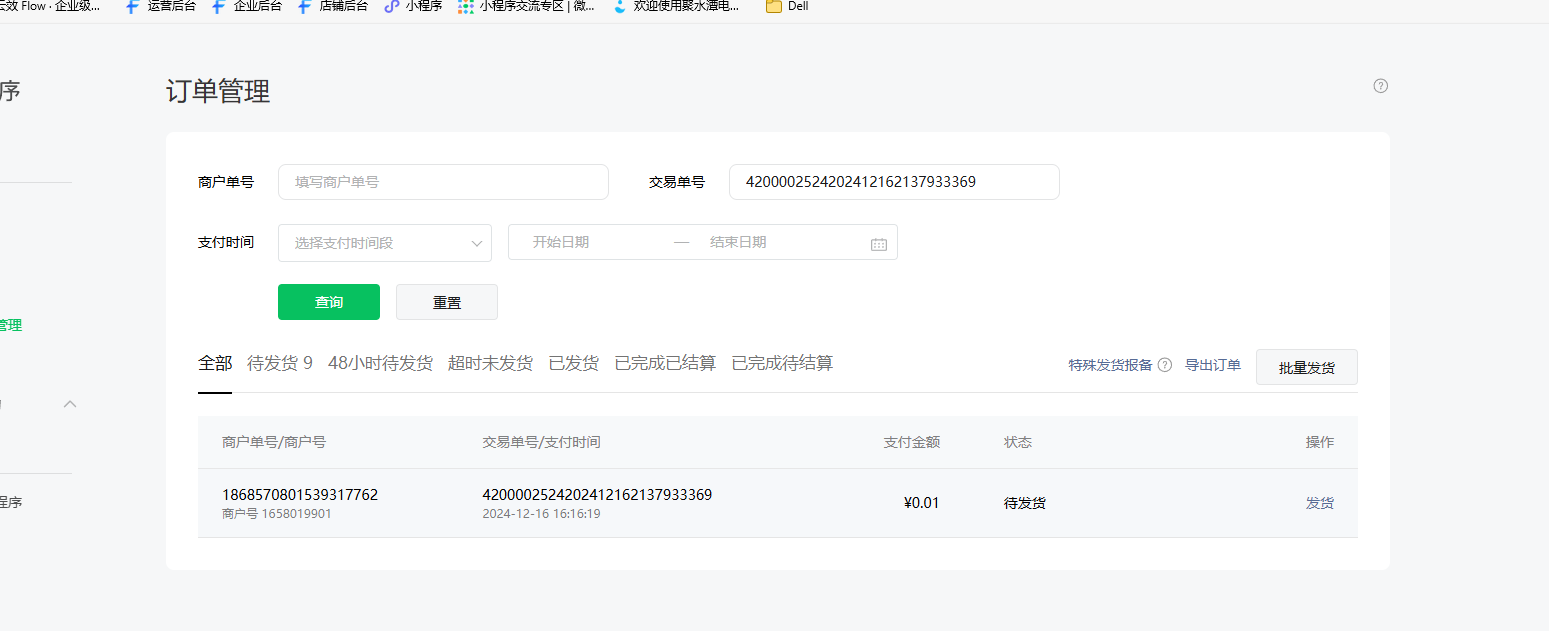 小程序微信支付成功,预售商品调用特殊发货报备接口,接口报错,提示:待发货列表中不存在对应单号。明明已经支付成功,为啥提示没有此单号?